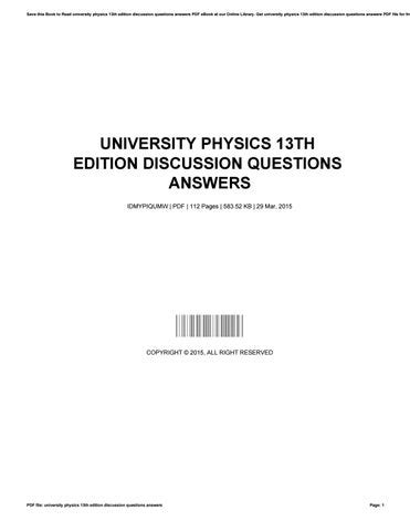 Online PDF UNIVERSITY PHYSICS 13TH EDITION ANSWER KEY Epub Open Library